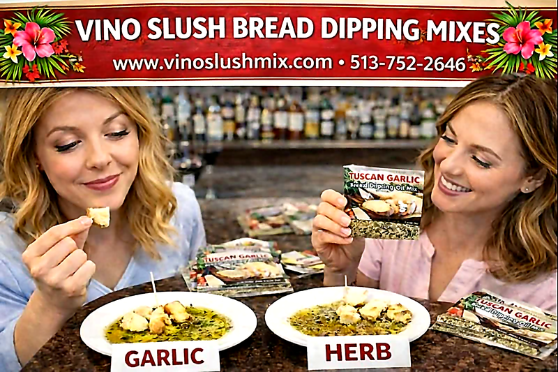 Savor the flavor with our Tuscan Garlic and Sicilian Herb bread dipping mixes. Just like Vino Slush adds a festive touch, these gourmet bread dips are ready in an instant, budget-friendly, and perfect for restaurants, tasting rooms, or at-home entertaining.